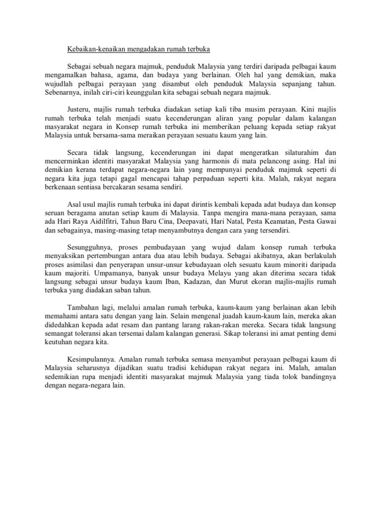 . Up to 24 cash back Rumah Terbuka. Pasca sambutan Aidilfitri di Rumah Terbuka ini Perdana Menteri akan segera bergegas ke Amerika Syarikat untuk menghadiri beberapa pertemuan dengan pemimpin. KARANGAN CEMERLANG SPM - Kebaikan Amalan Rumah Terbuka Kebaikan Amalan Rumah Terbuka.
